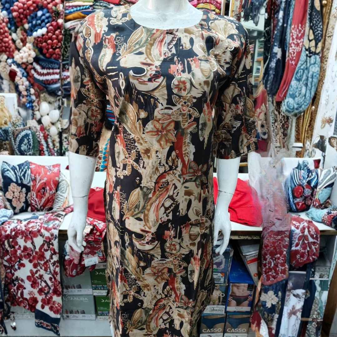 This stylish navy-blue floral printed CordSet blends comfort with sophistication. Designed with a flattering V-neckline and three-quarter sleeves, it offers a modern look while maintaining traditional charm. The CordSet showcases a beautiful mix of golden-beige and teal floral patterns, adding a refreshing and eye-catching appeal. Made from soft, breathable fabric, it drapes gracefully and ensures all-day comfort. Ideal for office wear, casual outings, or semi-festive events, this CordSet pairs effortlessly with leggings, palazzos, or straight pants.